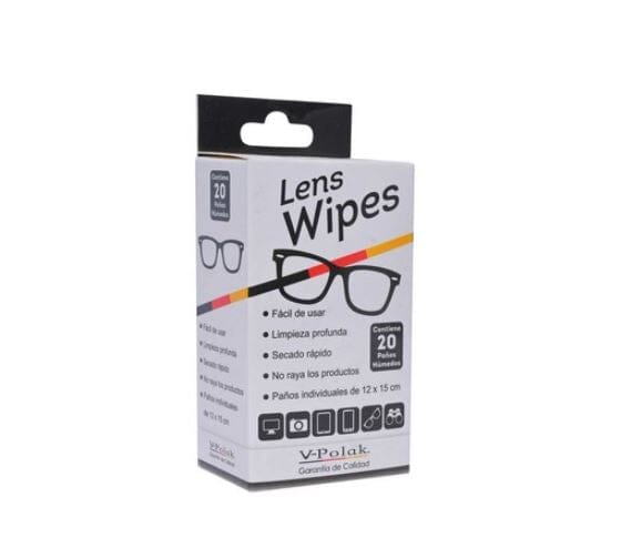 Paños húmedos para limpiar lentes y pantallas, son faciles de usar, entregan una limpieza profunda, son de secado rápido, no raya los productos, paños individuales de 12 x 15 cm. Contiene 20 paños.