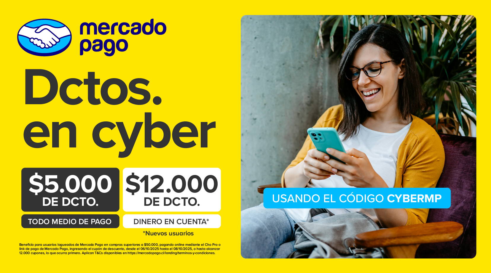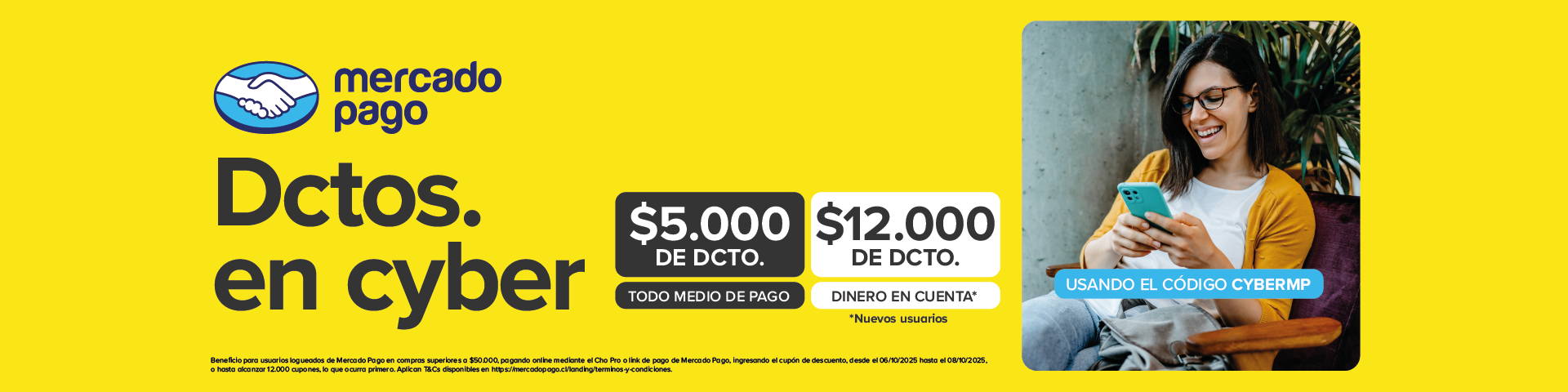 Descuento de 10% de descuento sin monto mínimo de compra pagando a través del botón de pago de Mercado Pago disponible en el sitio web www.farmex.cl. Válido para compras realizadas desde el 06/10/2025 al 08/10/2025 en Chile. Descuento no acumulable con otras promociones de Mercado Pago. Los usuarios deben acceder a su cuenta de Mercado Pago y en el botón de "tengo un descuento" escribir el código de FARMEXMP para hacer válido el beneficio. Máximo de descuento $10.000. 1 cupón por usuario.