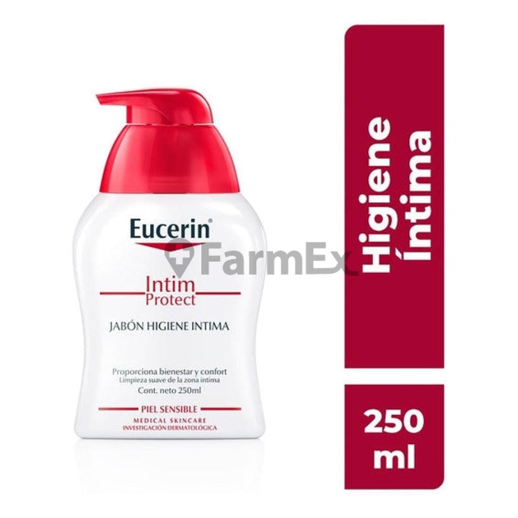 Protege y cuida la salud de tu zona íntima con **Eucerin Intim Protect**, el jabón de higiene íntima de 250 ml diseñado para la piel sensible. Su fórmula especial está desarrollada para mantener el equilibrio natural del pH de la piel, proporcionando una limpieza suave y eficaz sin causar irritación. Es la solución ideal para el uso diario, ayudándote a sentirte fresca, cómoda y protegida, respetando la delicadeza de tu piel.